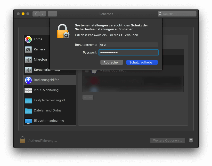 auf das Schloss in der unteren linken Ecke und authentifizieren