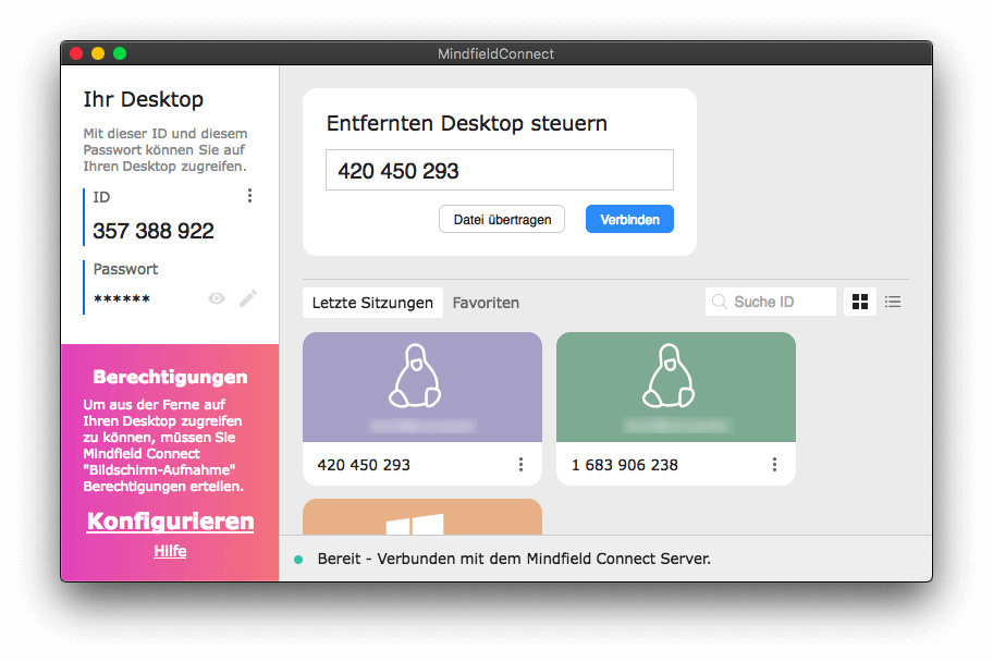 aktivieren Sie Mindfield Connect.