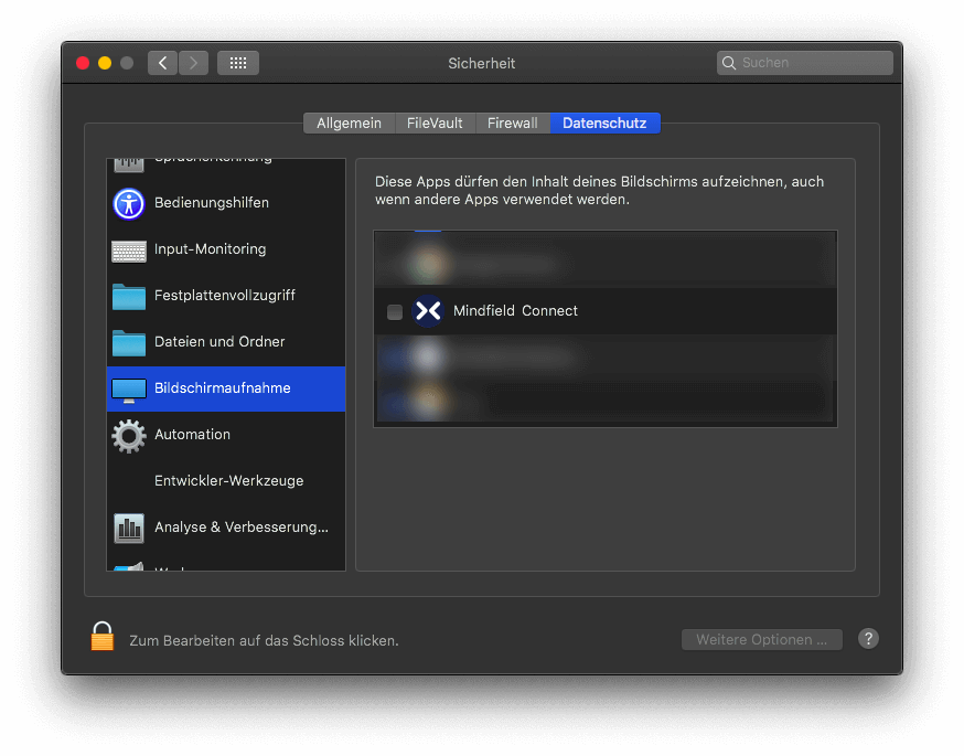 Systemeinstellungen und navigieren Sie zu dem Reiter Sicherheit